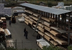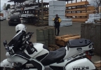 The man jumped a fence into the lumber yard and climbed up 25 feet to hide in a pile of wood, Lawler said.