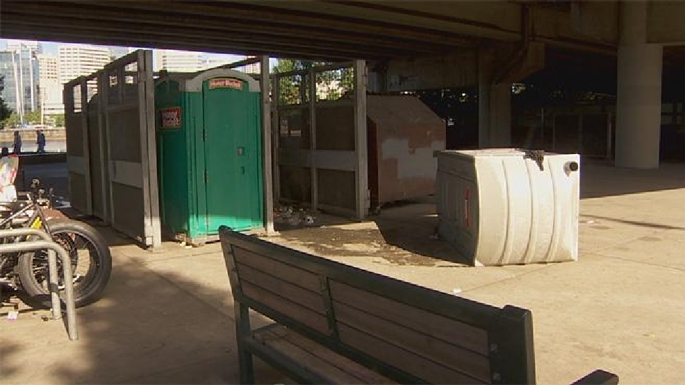 It all started around 8 a.m. Thursday at the Eastbank Esplanade at the foot of Portland's Hawthorne Bridge. Portland police say a 48-year-old homeless man was pleasuring himself inside a Honey Bucket portable toilet with the door wide open.