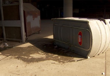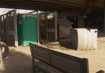 "(He) was flashing us over and over again, and we asked him multiple times and told him to stop and he wouldn't," a homeless woman said. "Our friend thought it would be funny to get up and jump behind the porta-potty and kick it."